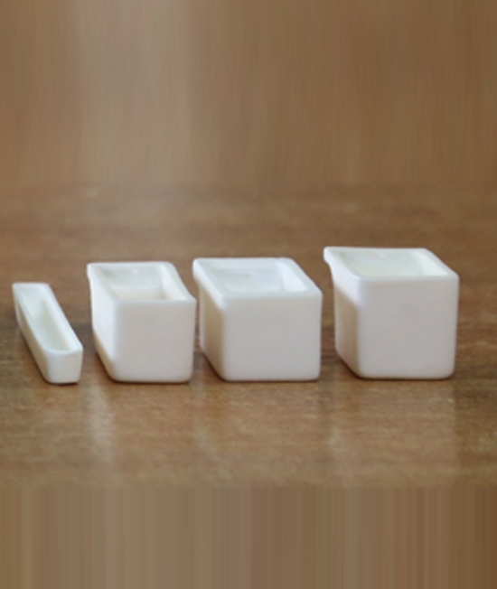 Alumina Boats with Length from 80 mm to 250 mm and Width from 8.0 mm to 50 mm and height of Alumina Boats from 8.0 mm to 100 mm and with storage volume of 2.0 cc to 1000 CC. Apart from these standard 13 sizes of Alumina Boats any non standard sizes can be made and delivered. For any such non standard size of Alumina Boats please do contact us by email at hitechceram@gmail.com or by phone to the below numbers 94980 95554 / 94455 38904
