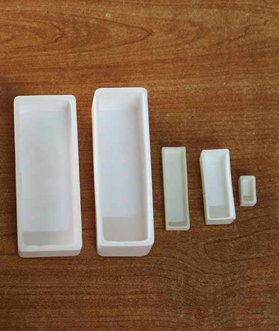 Alumina Trays with Length from 10 mm to 200 mm and Width from 10.0 mm to 90 mm and height of Alumina Boats from 5.0 mm to 25 mm and with storage volume of 0.2 cc to 340 CC. Apart from these standard 18 sizes of Alumina Trays any non standard sizes can be made and delivered. For any such non standard size of Alumina Trays please do contact us by email at hitechceram@gmail.com or by phone to the below numbers 94980 95554 / 94455 38904